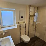 Det strandnära Dorfkrug Buesum - Guenstige Altbauzimmer Am Oland i Büsum har också snabbt internet och plattskärms-TV med satellitkanaler. Det finns heltäckningsmatta golv samt vitrinskåp.